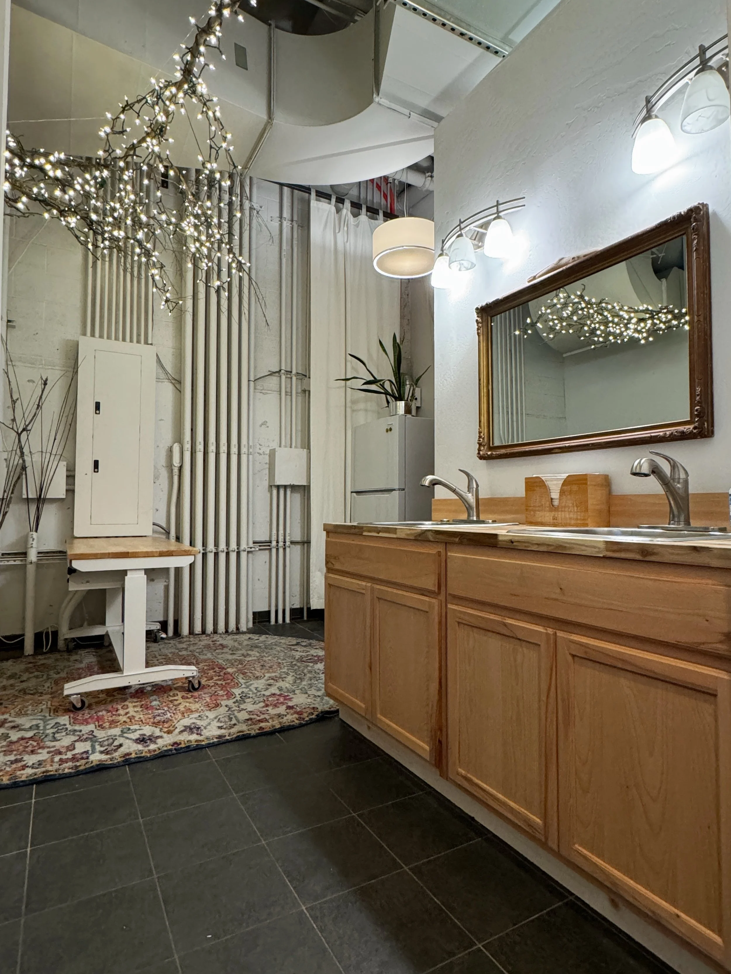 The Hearth is the home base for simple nourishment and informal connection. This kitchen-centered space offers generous counter room, warm lighting, and an easy flow for preparing food, tea, and shared meals. It is an ideal complement to retreat work, supporting the basics that help groups stay grounded in their experience.